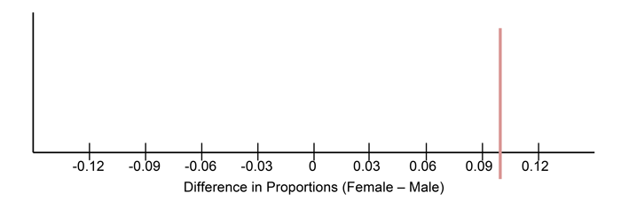 Using the entire slasher data set, the dotplot would look roughly symmetric and centered around 0, meaning that if there were no relationship between a character’s gender and whether or not they survive, the difference in proportions would typically be 0.