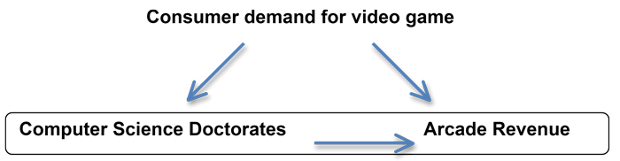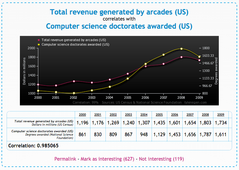 What are the two variables shown in your graph? Total revenue generated by arcades in the US and the number of computer science doctorates awarded.