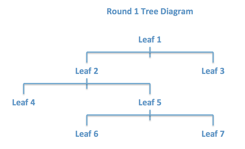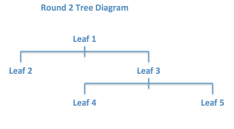 After proceeding through “Round 1,” ask an additional 5 students to come up as more “leaves,” distribute the cards from the CART Activity Round 2 Questions file (LMR_4.21), and arrange the students like the diagram below: