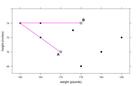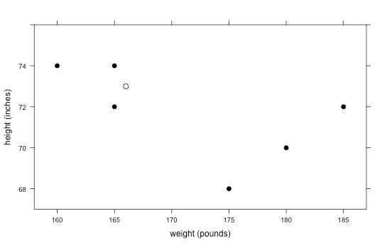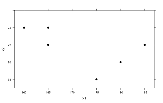 Obs X1 X2 1 160 74 2 165 72 3 165 74 4 175 68 5 180 70 6 185 72 -